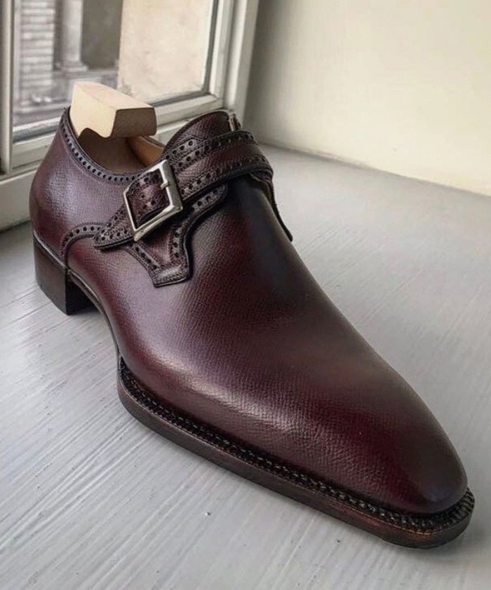 Latest Men's Awesome Wear Dark Brown Single Monk Strap Genuine Leather Formal Shoes