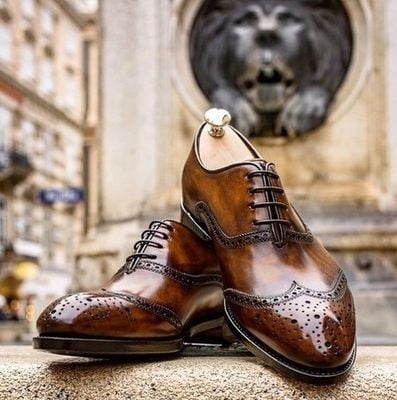 Trendy Hand Stitch Oxfords Brown Leather Shoes, Brogue Lace Up Formal Wear Shoes