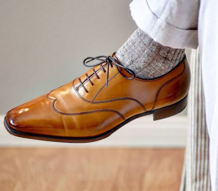 Hand Made Tan Brown Wingtip Leather Lace Up Shoes