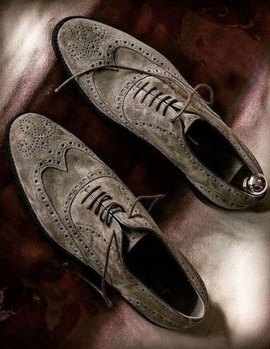 Handmade Men Grey Suede Decent Choice Wingtip Lace Up Shoes