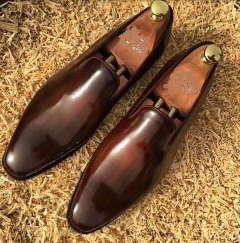 Awesome Wear Men's Hand Stitch Dark Brown Moccasin Genuine Leather Formal Shoes