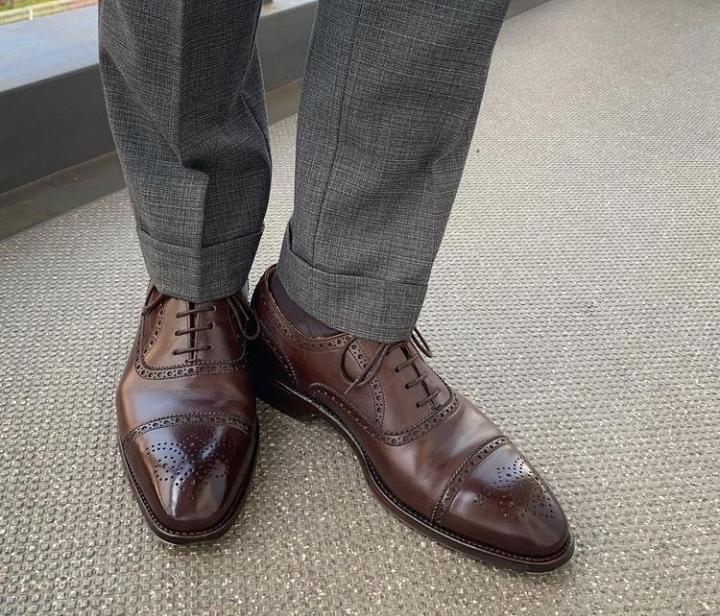 Luxury Hand Stitch Chocolate Brown Oxfords Cap Toe Brogue Genuine Leather Lace Up Shoes