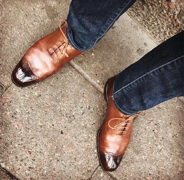 Best Hand Stitch Two Tone Brogue Toe Leather Lace Up Shoes