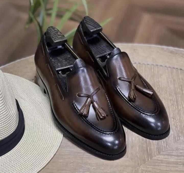 Awesome Wear Men's Chocolate Brown Black Shoes, Tassels Loafers Style Leather Shoes
