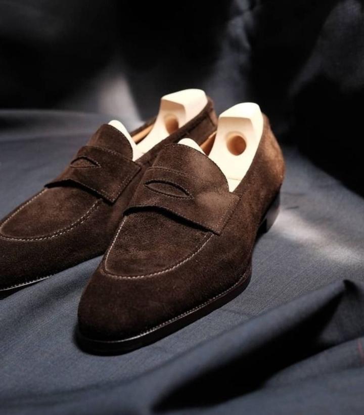 Decent Wear Men's Chocolate Brown Moccasin Shoes, Genuine Suede Formal Shoes