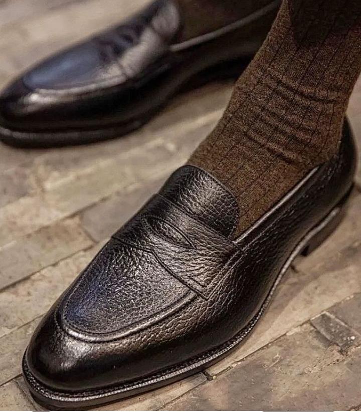 Trendy Men's Black Moccasin Genuine Leather Hand Stitch Shoes