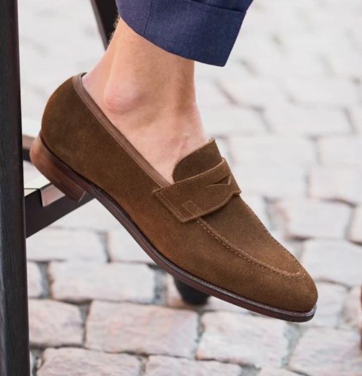 Handmade Men Classic Wear Brown Suede Loafers Slips On Holiday Shoes
