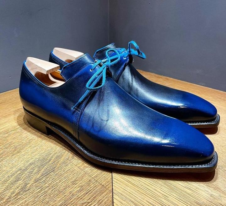 Luxury Men's Blue Chukka Genuine Leather Lace Up Shoes