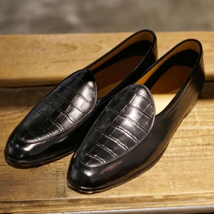 Best Fashion Men's Black Alligator Skin Shoes, Moccasin Shoes For Wedding