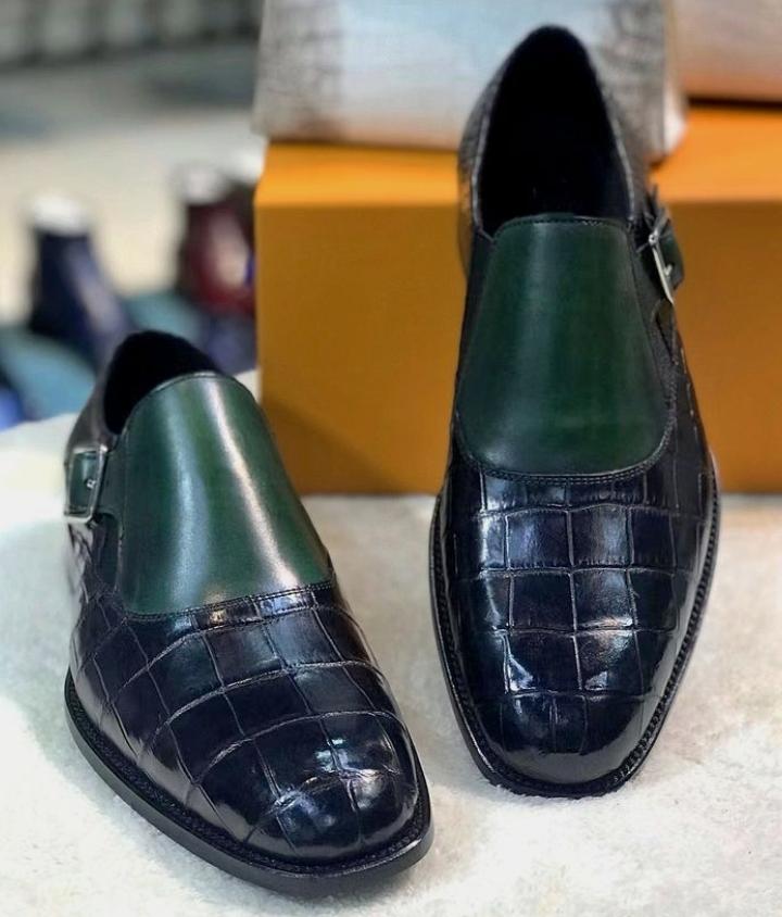 handmade men black alligator skin formal monk new style shoesShoes Details: