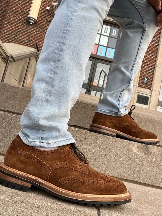 Hand Stitch Men's Brown Wingtip Brogue Lace Up Genuine Suede Shoes
