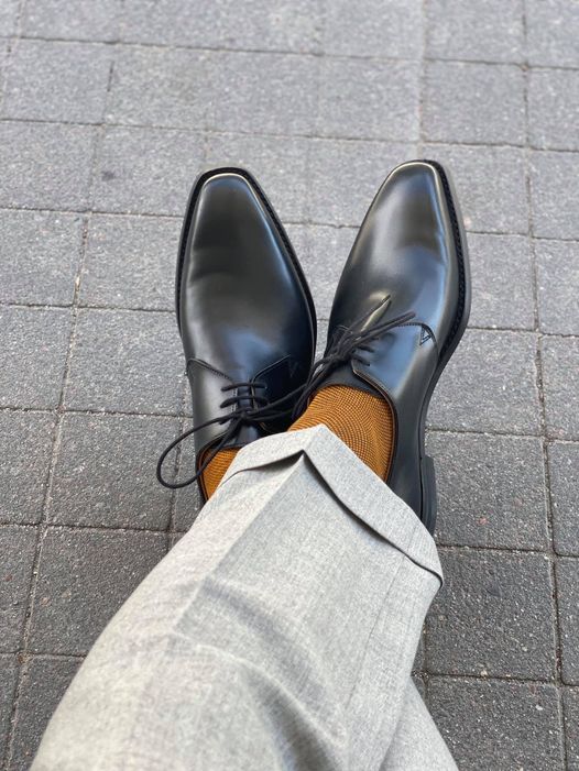 Elegant Men's Hand Stitch Black Genuine Leather Lace Up Shoes