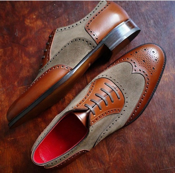 Classic Men's Hand Stitch Two Tone Leather Suede Lace Up Shoes