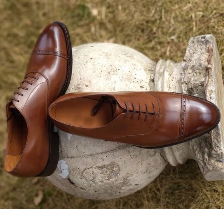 Awesome Wear Men's Brown Cap Toe Leather Lace Up Formal Shoes
