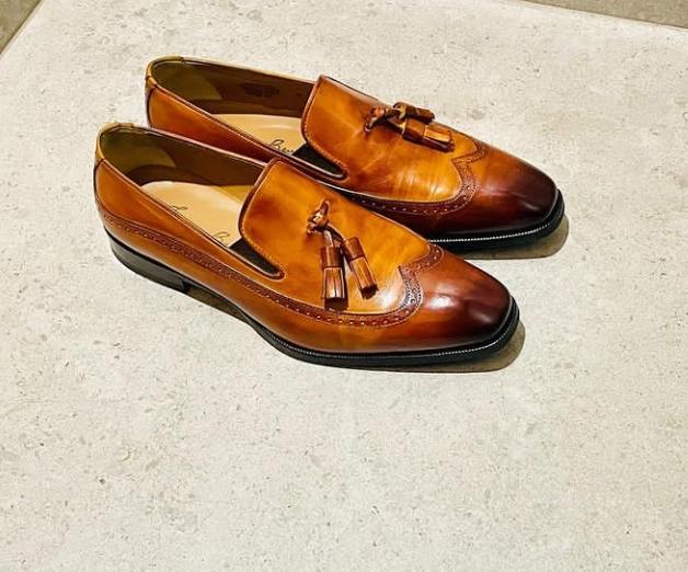 Decent Wear Men's Hand Stitch Brown Tassels Loafer Genuine Leather Shoes