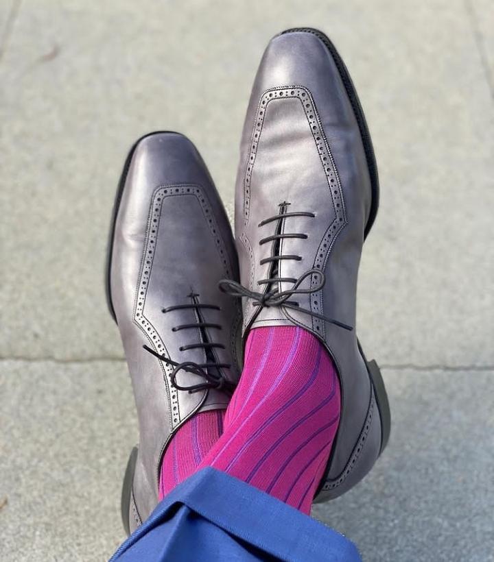 Handmade Men's Grey Lace Up Formal Leather Lace Up Shoes