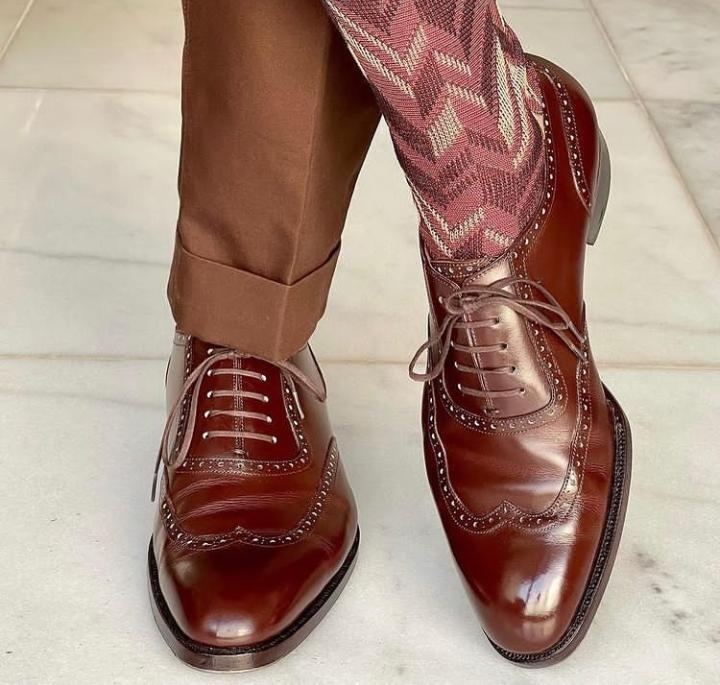 Decent Wear Men's Oxfords Brown Leather Shoes, Wingtip Lace Up Wedding Shoes