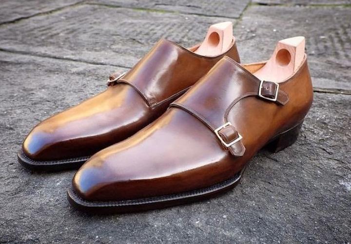 Decent Wear Men's Hand Stitch Brown Leather Double Monk Strap Shoes