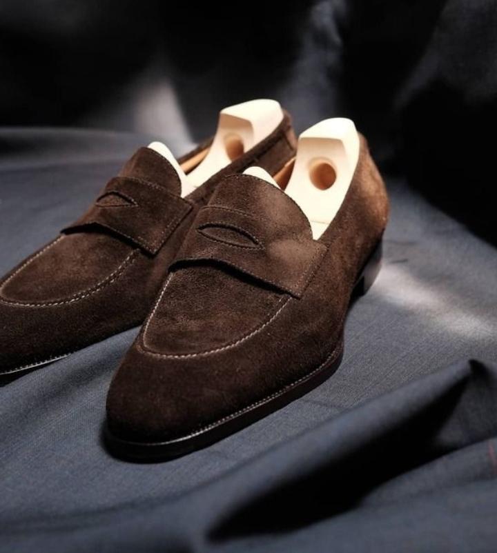 Luxury Men's Hand Stitch Chocolate Brown Genuine Suede Formal Shoes