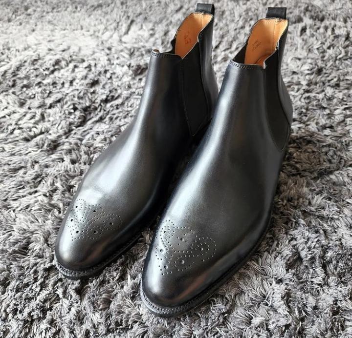 Mens Black Leather Awesome Handmade Chelsea Brogue Boot