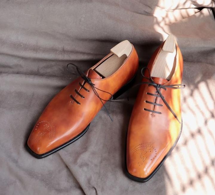 Mens Bespoke Tan Leather Decent Brogue Handmade Lace Up Shoes