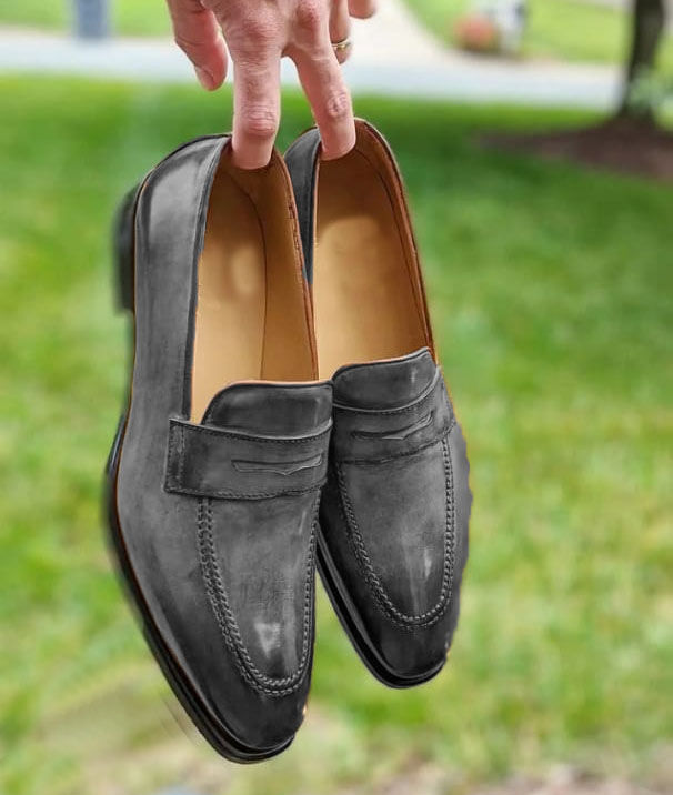 Handmade Men grey Leather Beautiful penny Loafer Moccasin Formal Shoes
