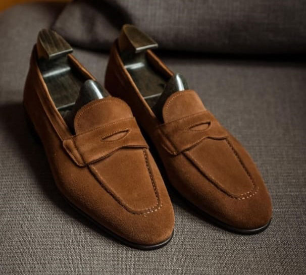 New Edition Mens Handmade Brown Suede Loafers Shoes, Men Penny Loafers Slips On Shoes