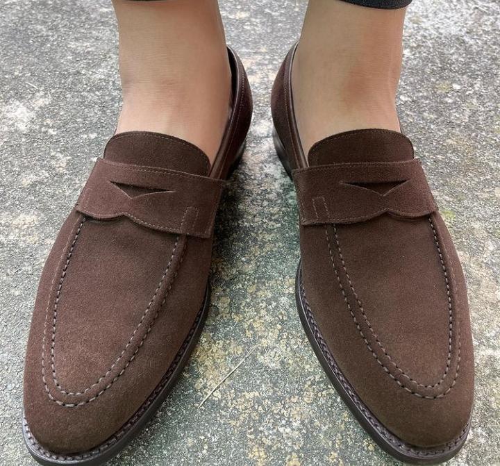 Hot Sale Men's Hand Stitch Brown Suede Penny Loafer Moccasin Leather Formal Shoes