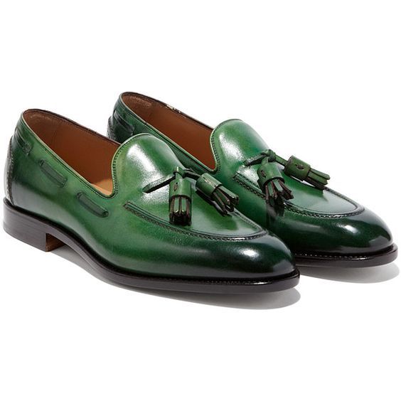 Awesome Unique Bottle Green Leather Polishing Handmade Loafers Slips On Men's Shoes