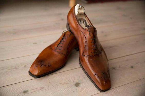 Men's Handmade Patient Brown Leather Brogue Toe Beautiful Handmade Shoes
