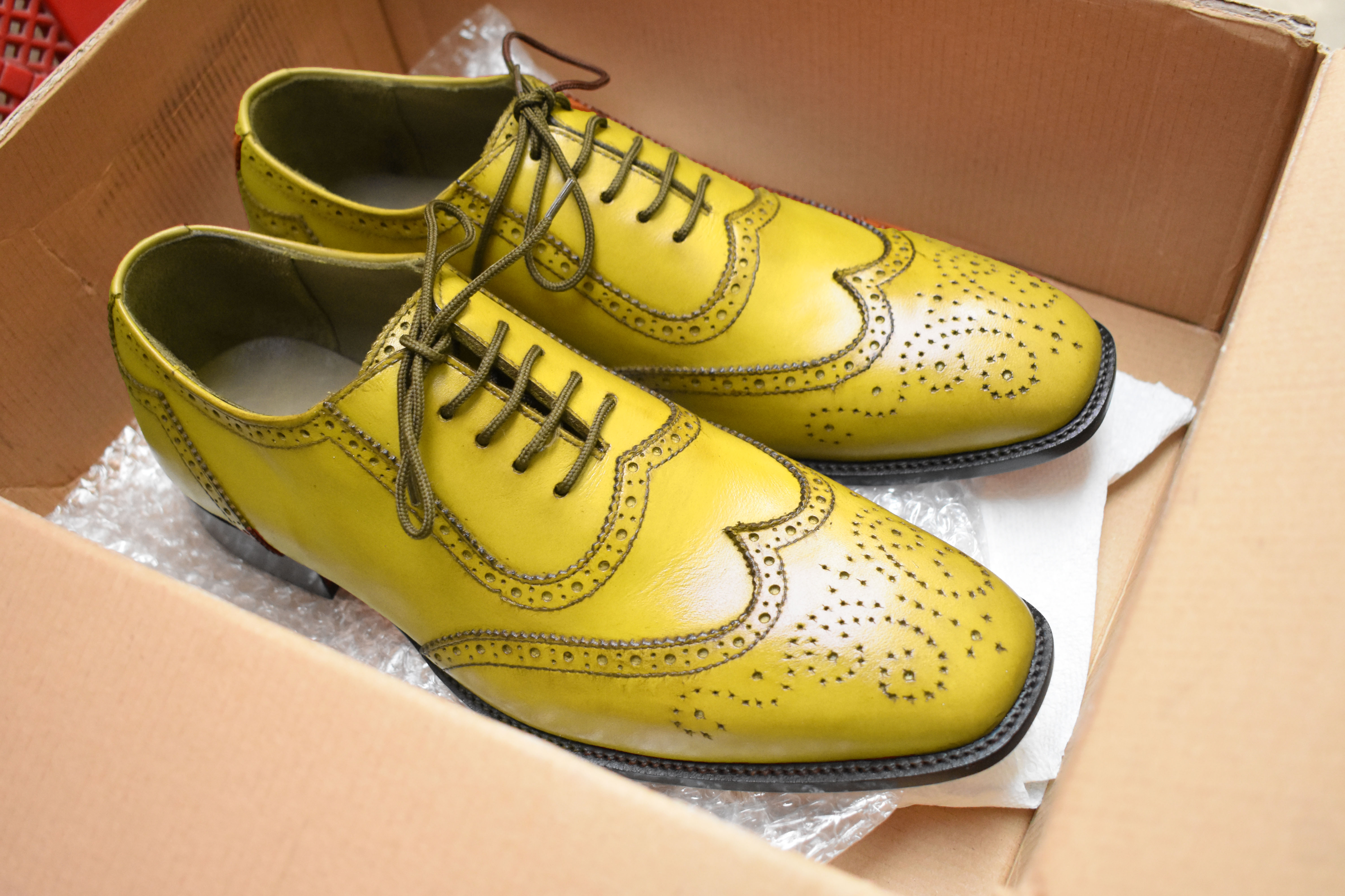 Yellow Color Leather Beautifully Brogue Design Oxfords Handmade Lace Up Shoes, Men's Wingtip Oxford Shoes