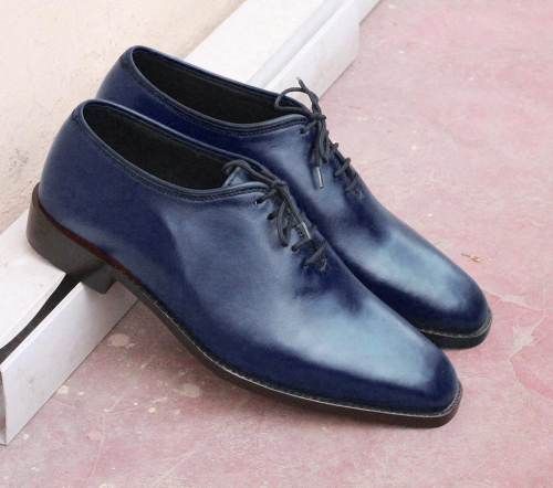 Men's Navy Blue Leather Formal Choice Gentlemen Wedding Shoes Men Handmade Lace Up Shoes