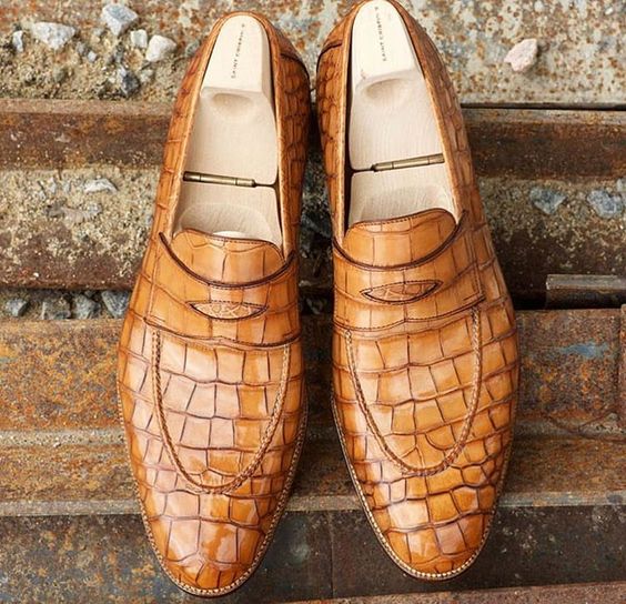 Great Weekends Tour Tan Alligator Skin Leather Handmade Penny Loafer Dress Shoes