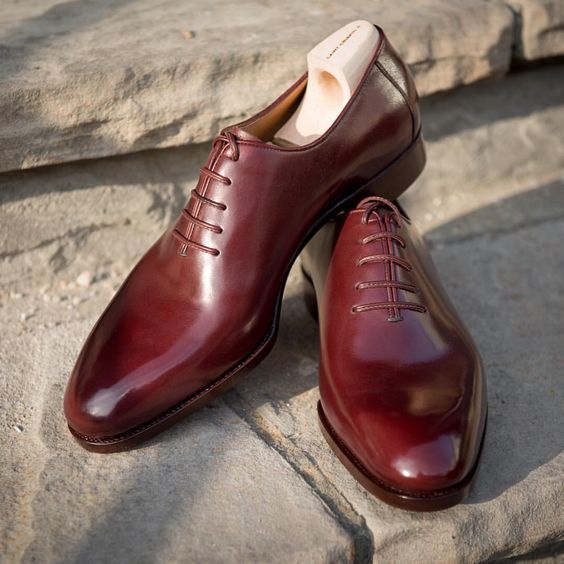 Burgundy Leather Derby Style Formal Wear Mens Handmade Shoes