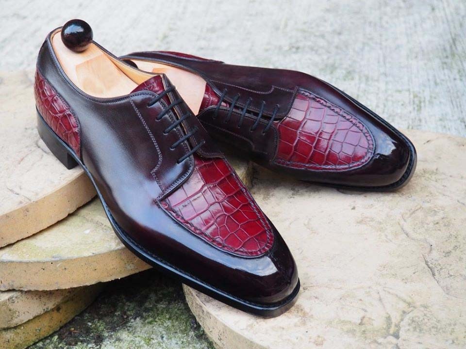 mens brown beauty with alligator panel touch handmade lace up shoes
