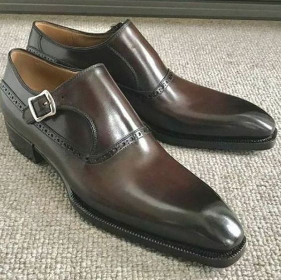Men's Handmade Brown Leather Single Monk Strap Wedding Collection Shoes