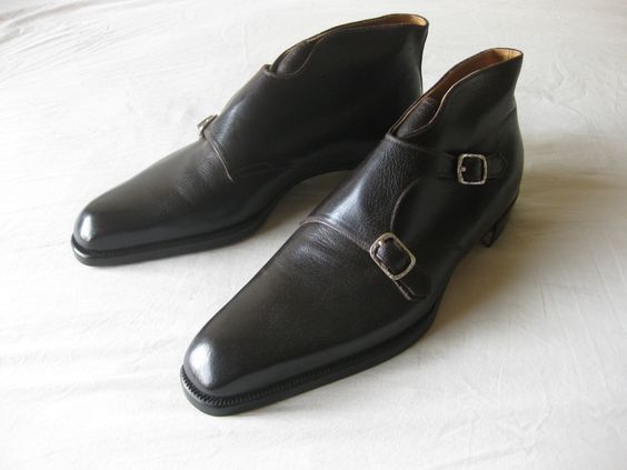 Men's Black Leather Double Buckle Handmade Dress Boot Designer Boot Collection