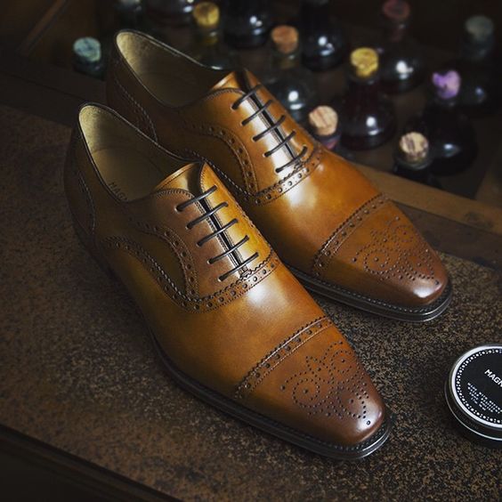 Men's Ideal Choice Outstanding Polishing Tan Leather Cap Toe Dress Shoes