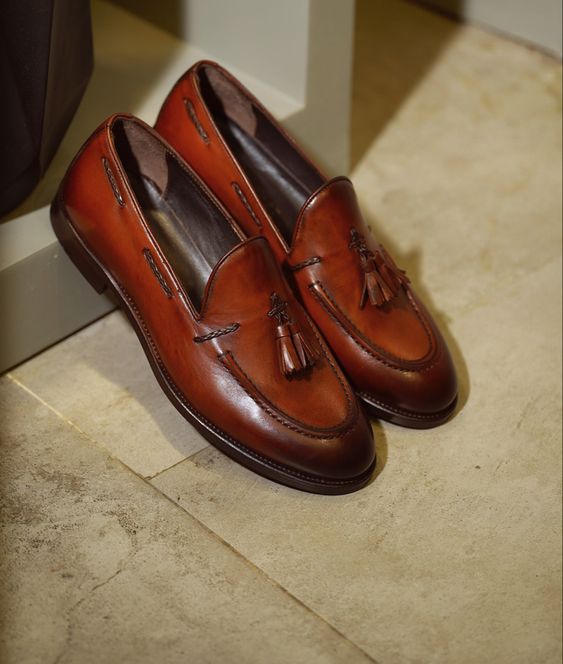 Beautiful Design Handmade Mens Brown Tassels Loafers Slips On Moccasin Shoes
