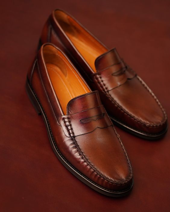 Men's Handmade Classic Brown Leather Beauty Touching Penny Loafer Dress Shoes