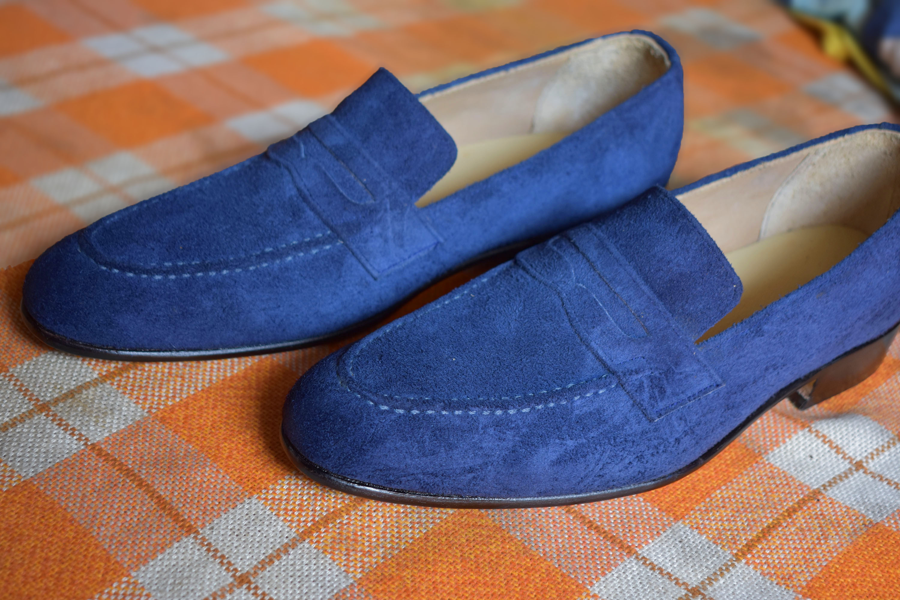 Men's Handmade Classic Navy Suede Penny Loafers Dress Shoes