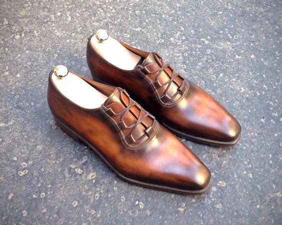 Men's Handmade Brown Leather Beautiful Polishing Lace Up Shoes