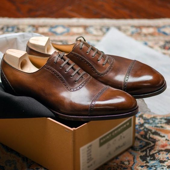 Men's Handmade Oxfords Brown Leather Beautiful Polishing Lace Up Shoes
