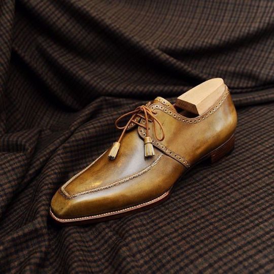 Men's Classic Tan Leather Polishing Handmade Tassels Loafers Shoes