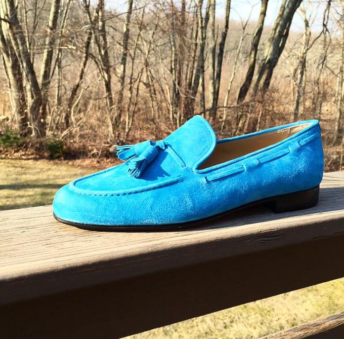 Men's Sky Blue Suede Really Nice Handmade Tassels Design Loafer Slips On Shoes
