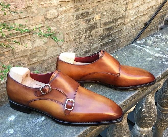 Men's Brown Leather Really Nice Double Monk Handmade Patina Design Shoes