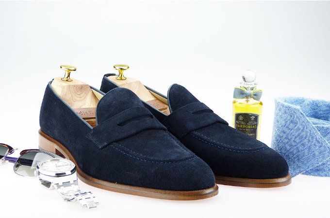 Hot Sale Men's Decent Hand Stitch Navy Blue Shoes, Genuine Suede Formal Moccasin Shoes