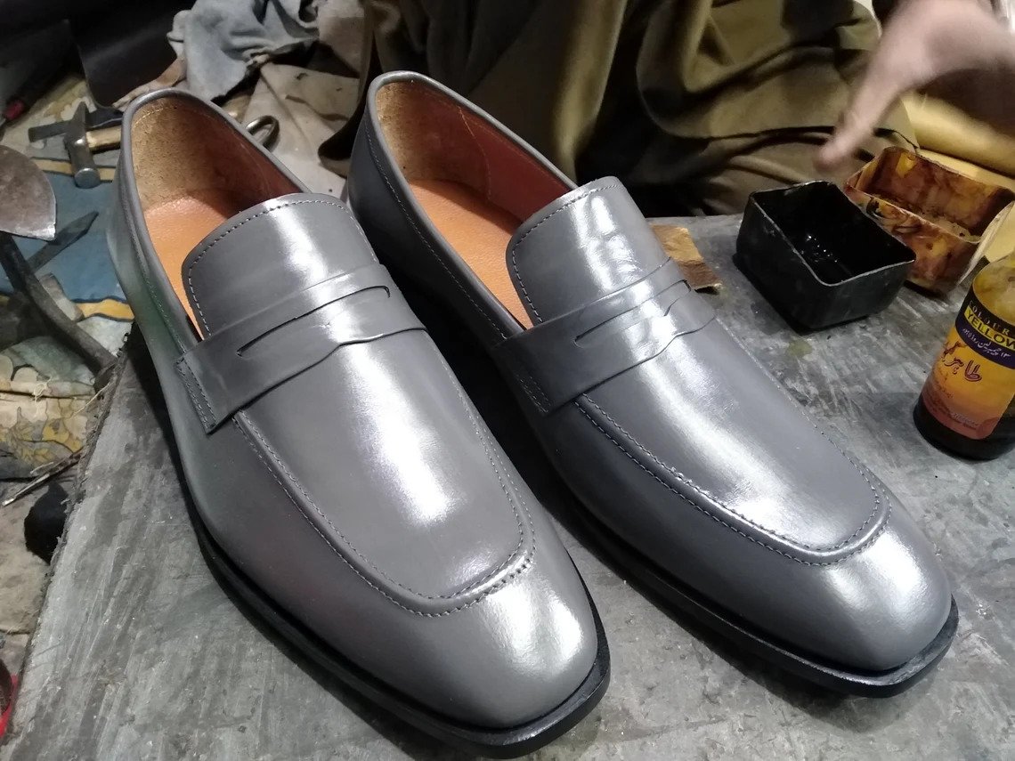 Men's Best Selection Of Grey Leather Penny Loafer Handmade Choice Dress Shoes