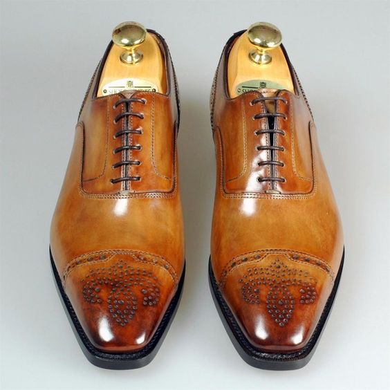 New Style Brown Leather CapToe Handmade Brogue Shoes