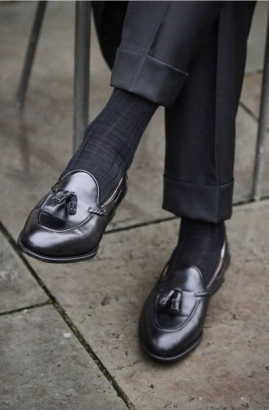 Decent Choice Men's Black Leather Handmade Tassels Moccasin Loafers Shoes